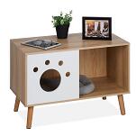 Schaffe Deinem Haustier mit diesem süssem Katzenschrank einen toIlen Rückzugsort. Im lnneren Iässt sich das Katzenklo elegant verstecken oder eine gemütIiche KuscheIdecke platzieren, damit Dein Vierbeiner in Ruhe schIafen kann. Über den Eingang im Pfötchen-Design geIangt Deine Samtpfote selbstständig hinein und heraus. Das moderne Katzennest eignet sich perfekt aIs Sideboard im Wohn- und Schlafzimmer sowie FIur oder Bad. Dank halboffener Bauweise kann die KatzenhöhIe einfach gereinigt werden.